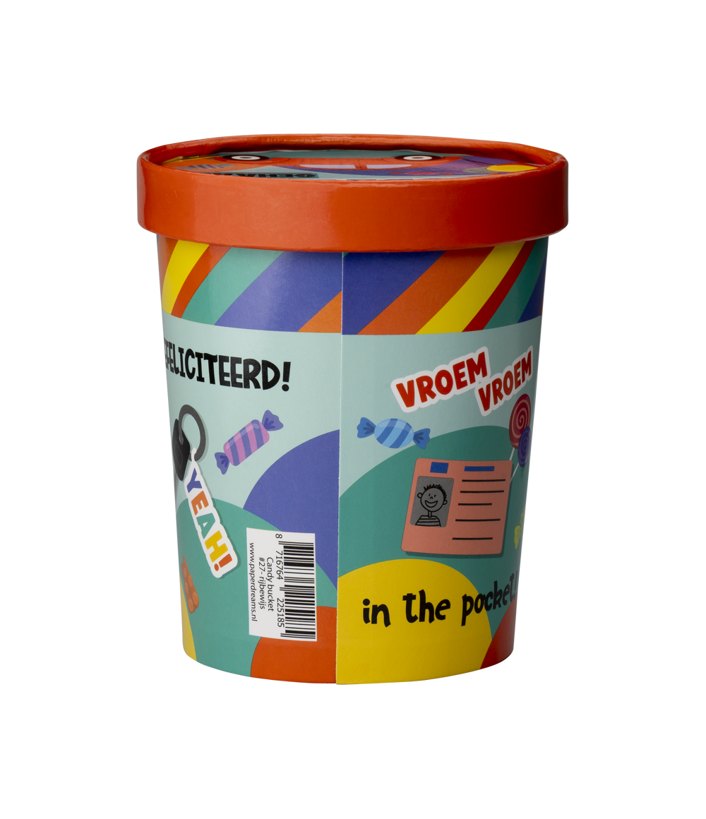 De muntre slikspande er et rigtigt blikfang i butikken. Blandt andet på grund af det sjove design er denne slikspand meget rar at få. Slikspandene er lavet af pap!