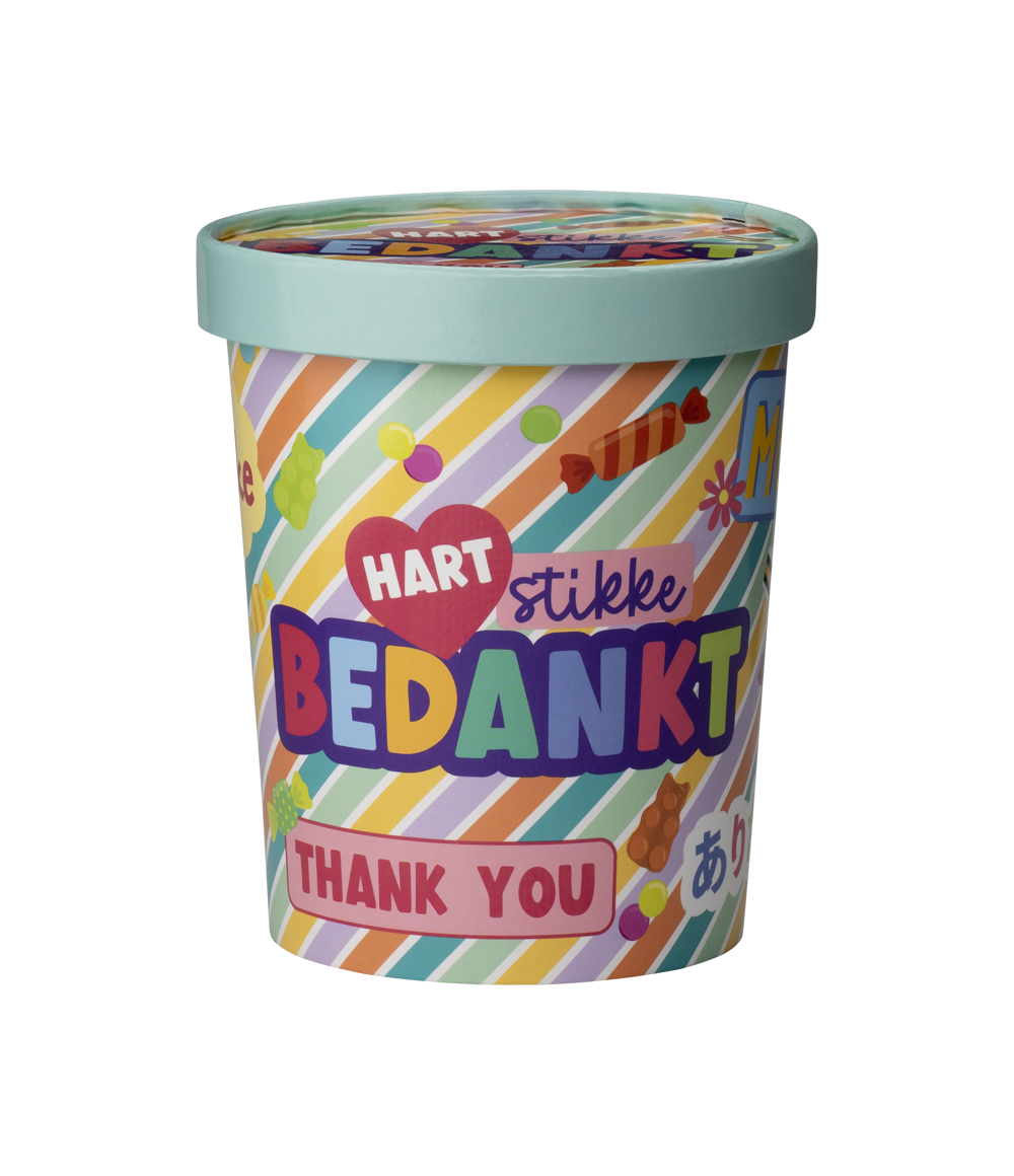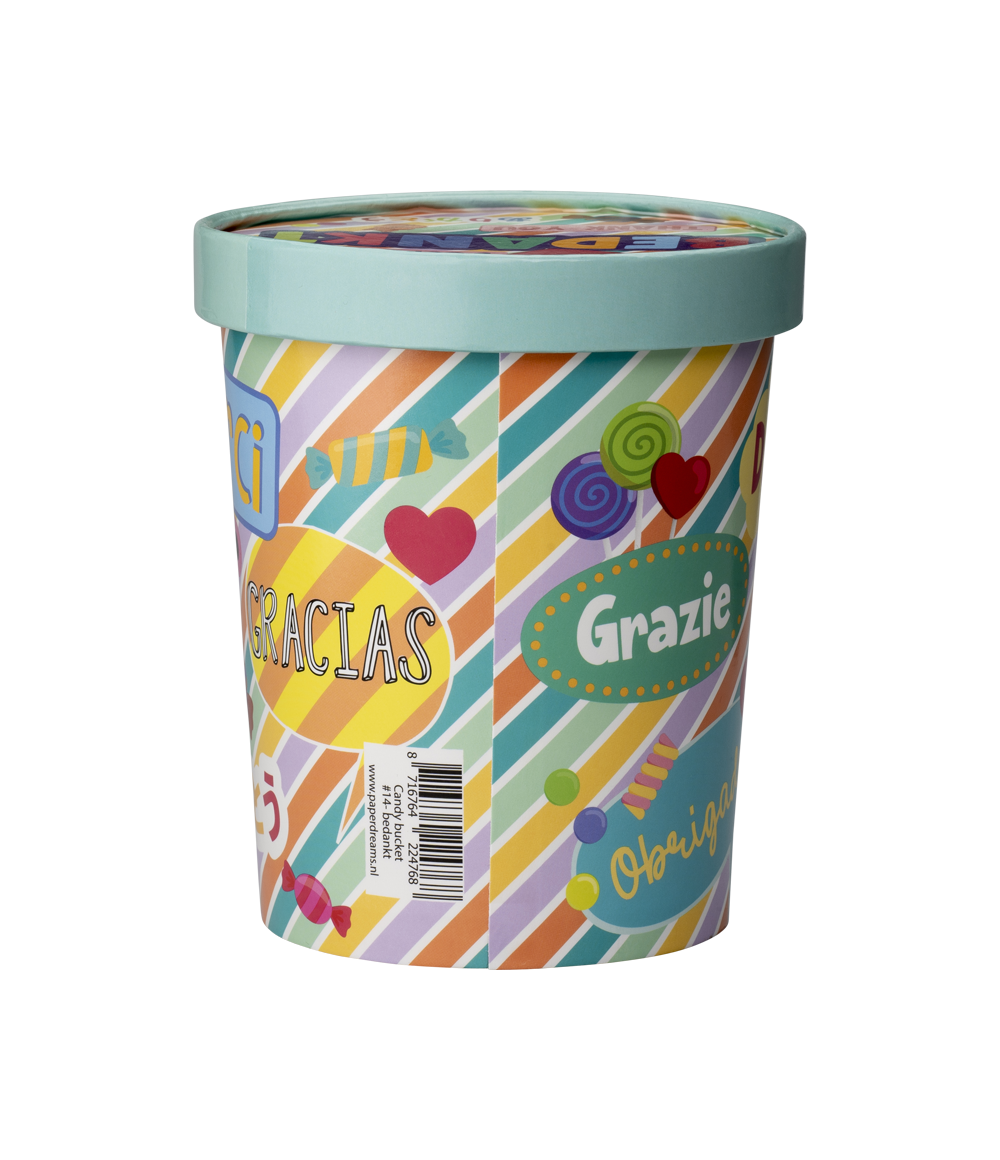 De muntre slikspande er et rigtigt blikfang i butikken. Blandt andet på grund af det sjove design er denne slikspand meget rar at få. Slikspandene er lavet af pap!