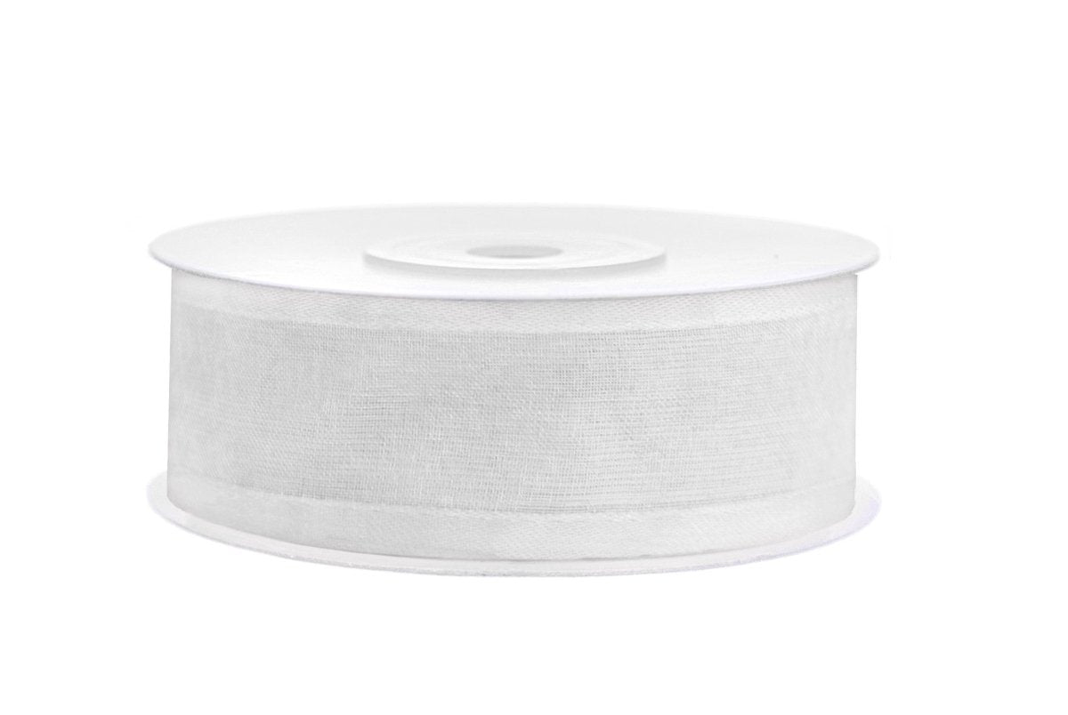 Chiffonbånd hvid med kant 25 mm 25 m