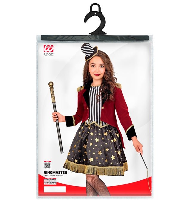 Kostumet har et chikt look med en glitrende tutu og en sød minihat, der får enhver pige til at føle sig som en rigtig cirkusdirektør et øjeblik!