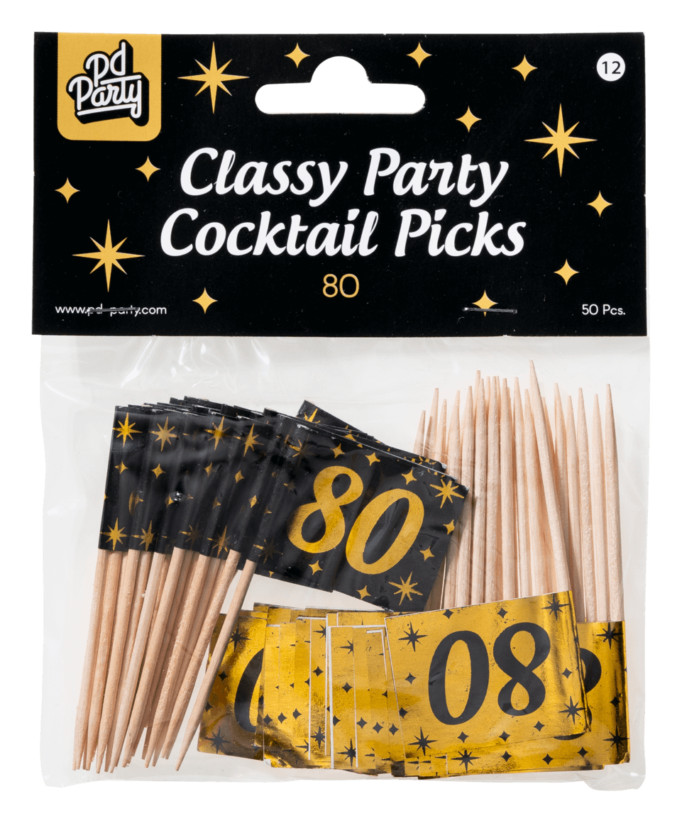 Cocktailpinde 80 år 6,5 cm 50 stk