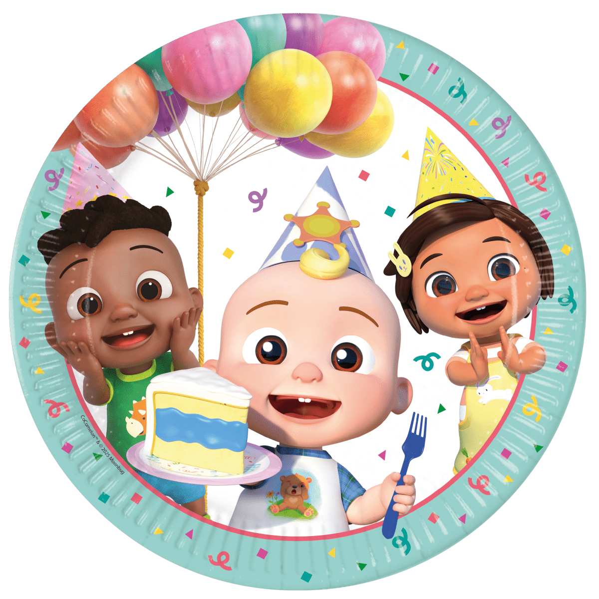 Gør festbordet ekstra muntert med disse Cocomelon-tallerkener. Ideelle til børnefester og fødselsdage med Cocomelon-tema.