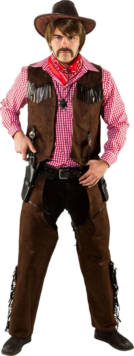 Denne cowgirl/cowboy-vest i ruskindslook er et komplet tøjtilbehør til kostume- eller temaformål. Fremstillet af 100% polyester.