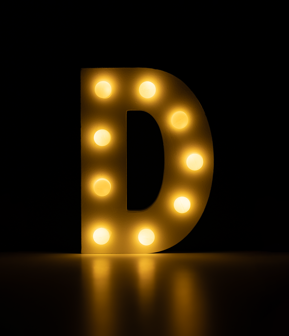 De lyse bogstaver giver dig mulighed for at skabe dine egne ord og sætninger på stemningsfulde måder. Et batteri medfølger.