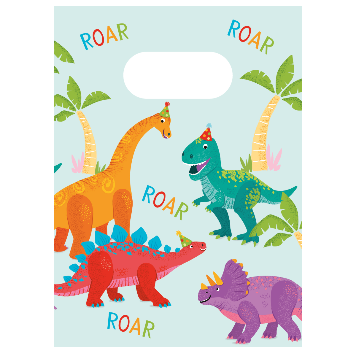 Gør enhver børnefest ekstra sjov med disse Dino Party uddelingsposer! Perfekt til at fylde med slik, små stykker legetøj eller godbidder. Det farverige dinosaurprint tilføjer et muntert strejf til enhver lejlighed og gør disse poser ideelle til ægte dinofans.
