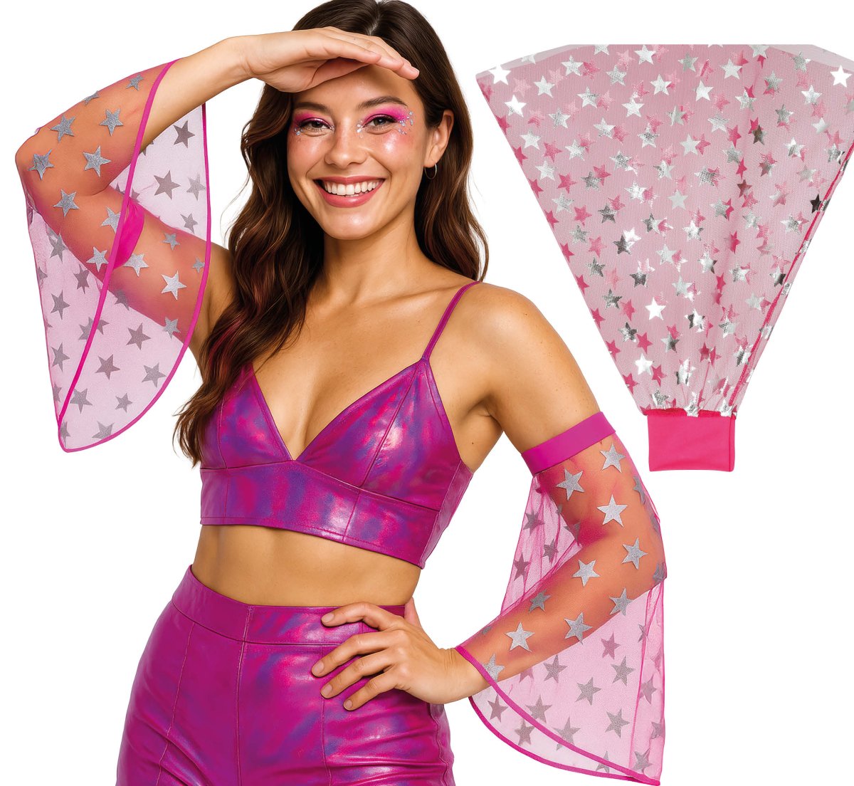 Fuldend dit disco-outfit med disse iøjnefaldende 70'er disco-sommerfugleærmer med stjerner. Perfekt til karneval, temafester og discoaftener i 70'er-stil.