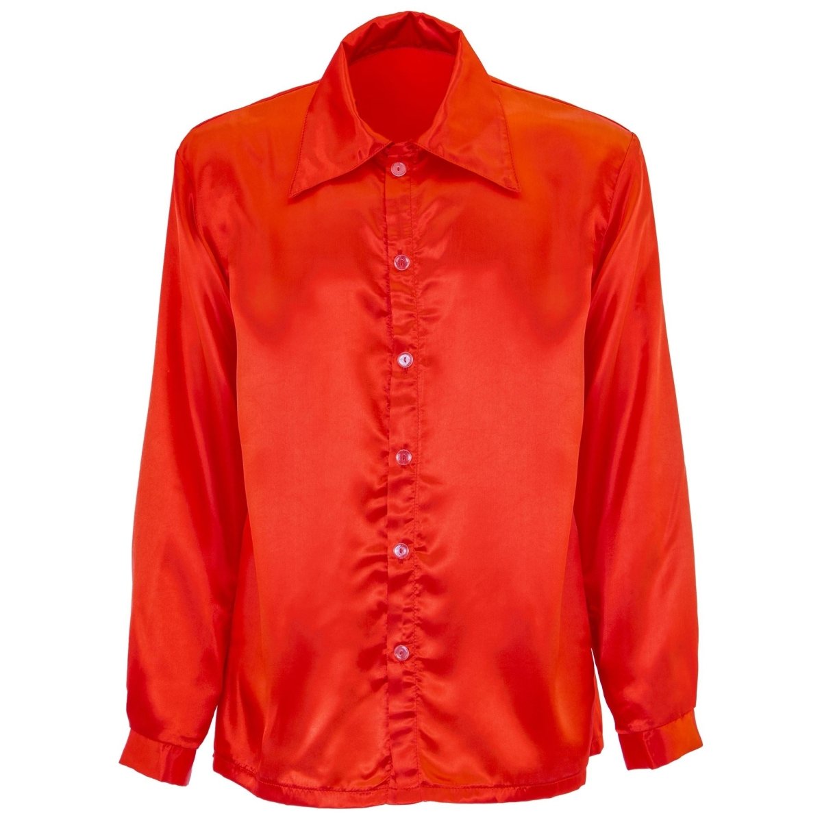 Beskrivelse: satinrød 70'er discoskjorte