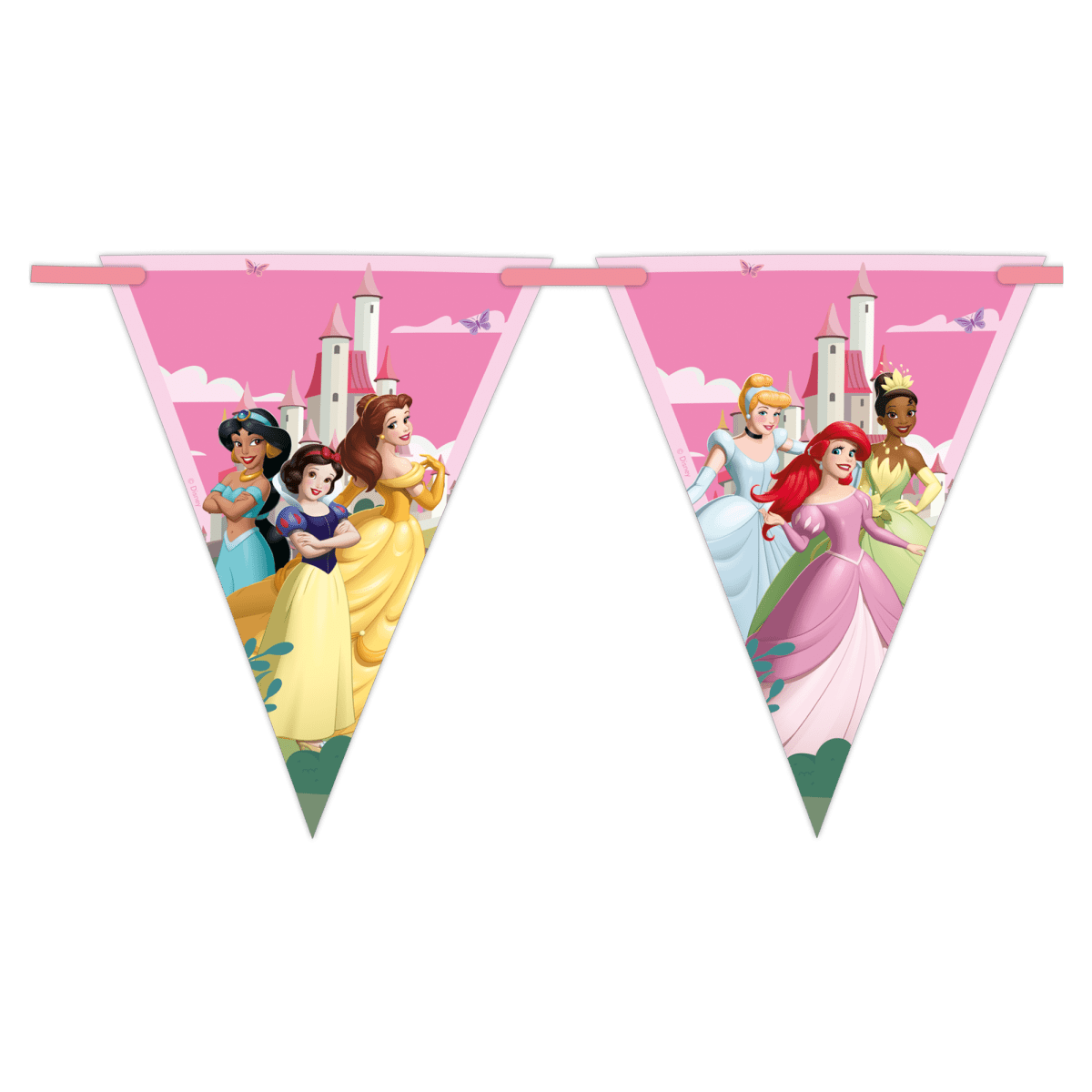 Denne Disney Princesses-guirlande giver øjeblikkeligt en magisk atmosfære til enhver fest. Med farverige flag med populære prinsesser er denne guirlande perfekt til fødselsdage, temafester og alle, der elsker prinsesser. Det lette papirmateriale gør guirlanden nem at hænge op og ideel til indendørs brug.