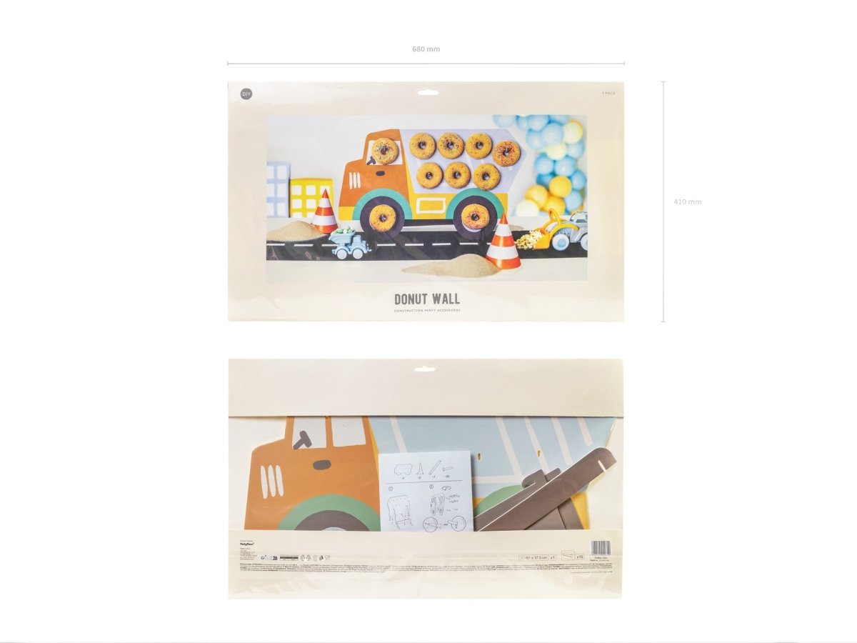 Donut wall Truck, lavet af papir med 10 stik til selvmontering, bredde ca. 61 cm, højde ca. 37,5 cm.