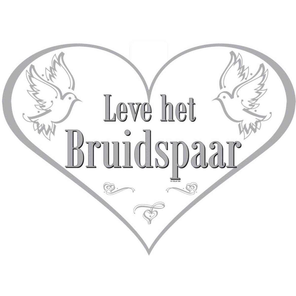 Dørskiltet Længe Leve Bryllupsparret. Indhold: 1 dørskilt. Kan f.eks. bruges til følgende fester/anledninger: Bryllup. Størrelse: 45 x 33 cm. Varen er fremstillet af pap.