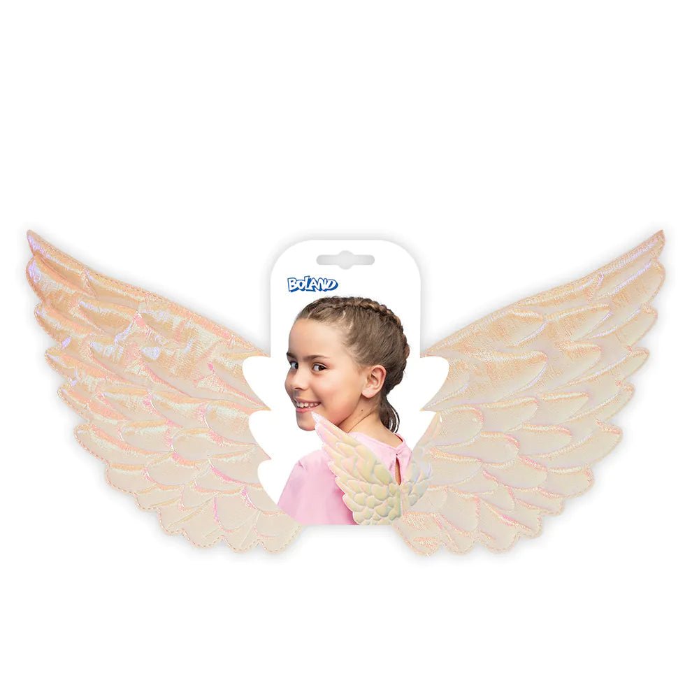 Disse magiske vinger i skinnende perlehvid farve giver et fortryllende touch til ethvert outfit. Den praktiske størrelse gør vingerne perfekte til både børn og voksne. Et must-have til fantasifulde børnefester, særlige festivaloutfits eller et fortryllende karnevalskostume som engel eller fe.