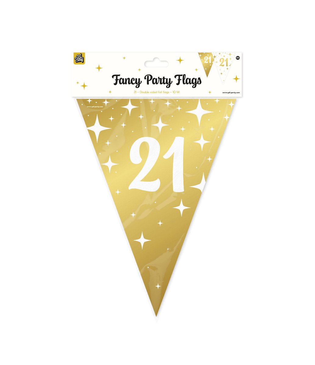 De Fancy Party Flags foil - 21 kan kombineres perfekt med vores matchende balloner samt med andre festartikler fra vores brede sortiment, så du uden besvær kan skabe en festlig og stilfuld atmosfære.
