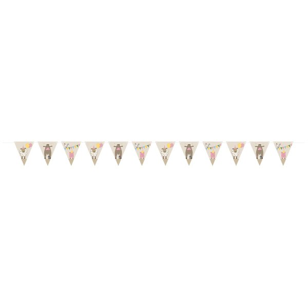 Dette farverige banner er den perfekte hængende dekoration til en fest med bondegårdstema. De trekantede vimpler forestiller glade bondegårdsdyr som får og køer, der helt sikkert er klar til fest, med festhatte på og balloner i hånden!