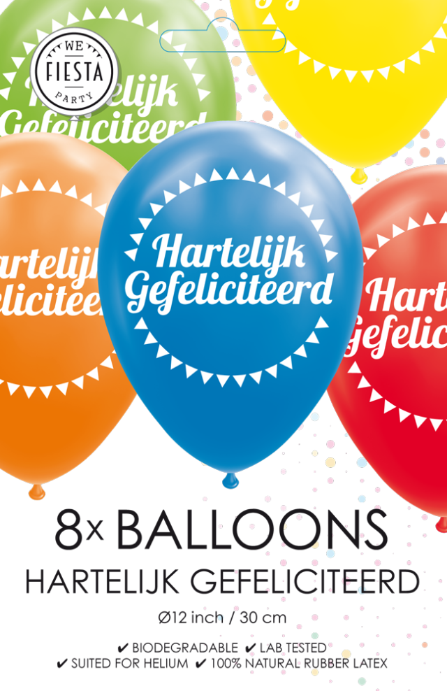 Farvede balloner Happy Birthday 30,5 cm 8 stk