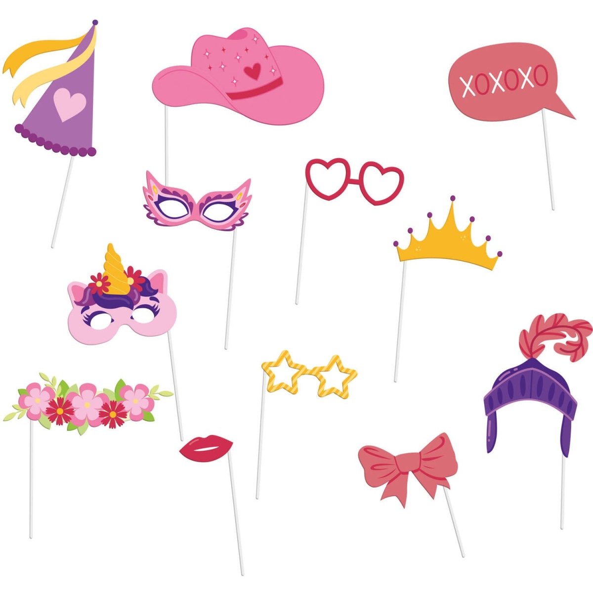 Farvede Photobooth rekvisitter Piger 20cm 12stk