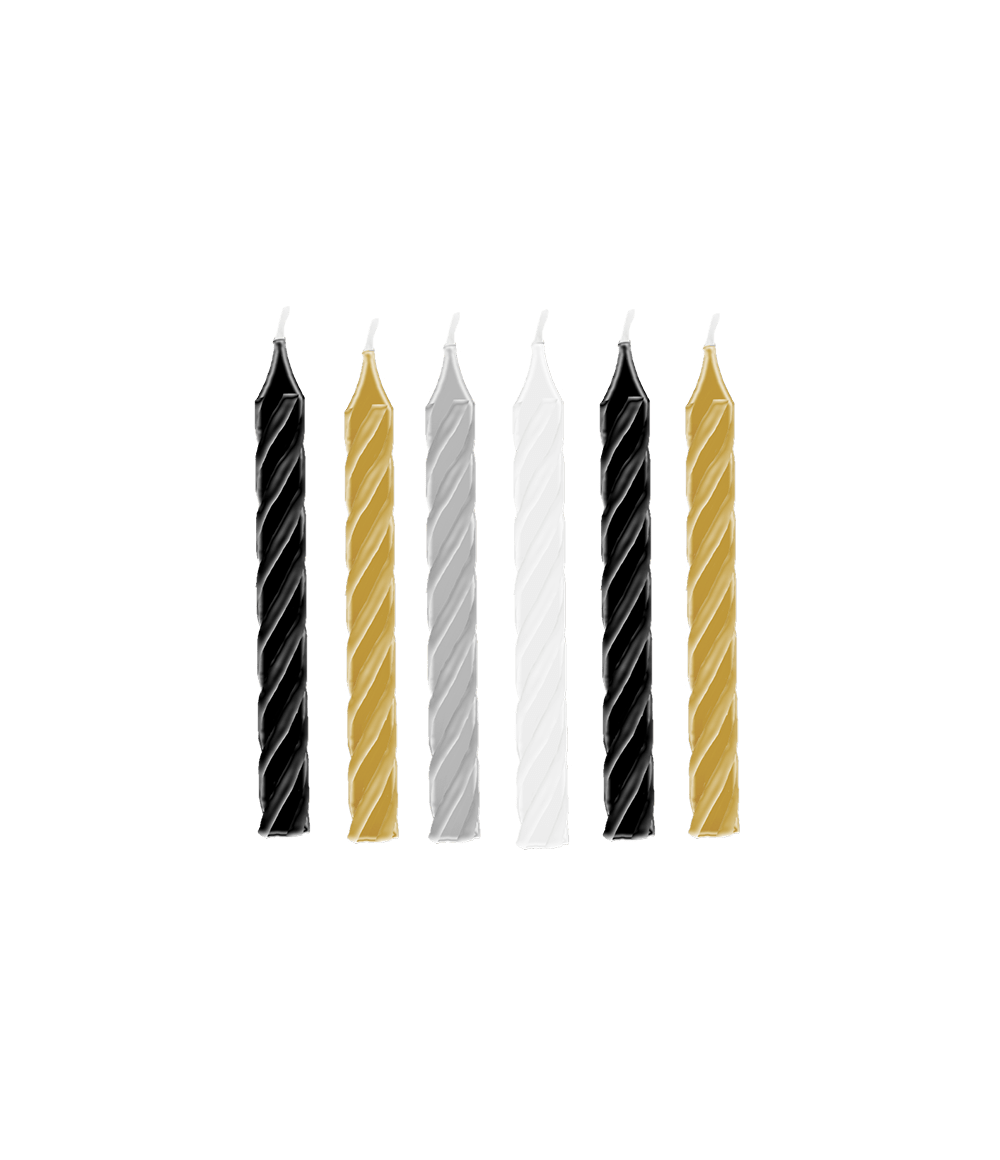 Farvede stearinlys Mix Sort Guld Sølv Hvid 12,5 cm 6 stk