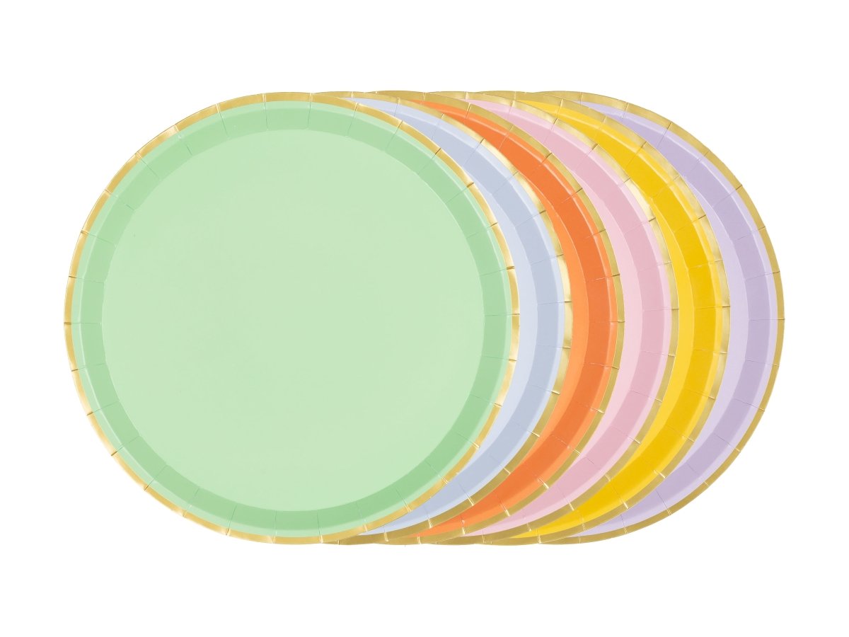 Paptallerkener med guldkant, blandede farver