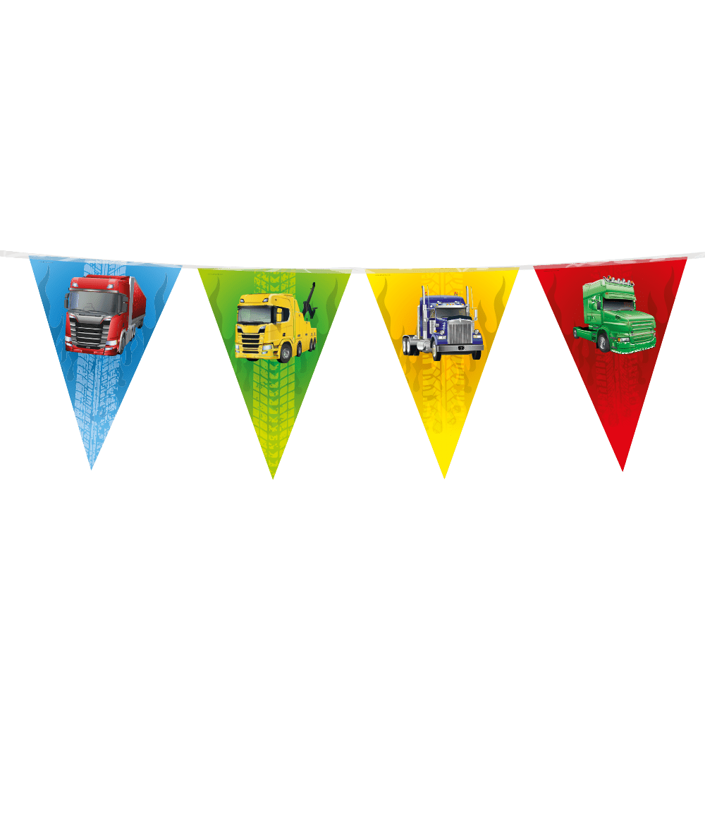 En børnefest kan ikke gå uden flag, og når du køber disse festflag i folie Trucks, får du med det samme en flagline med et unikt tema! Flagene er lavet af folie, og flaglinjen er 10 meter lang.