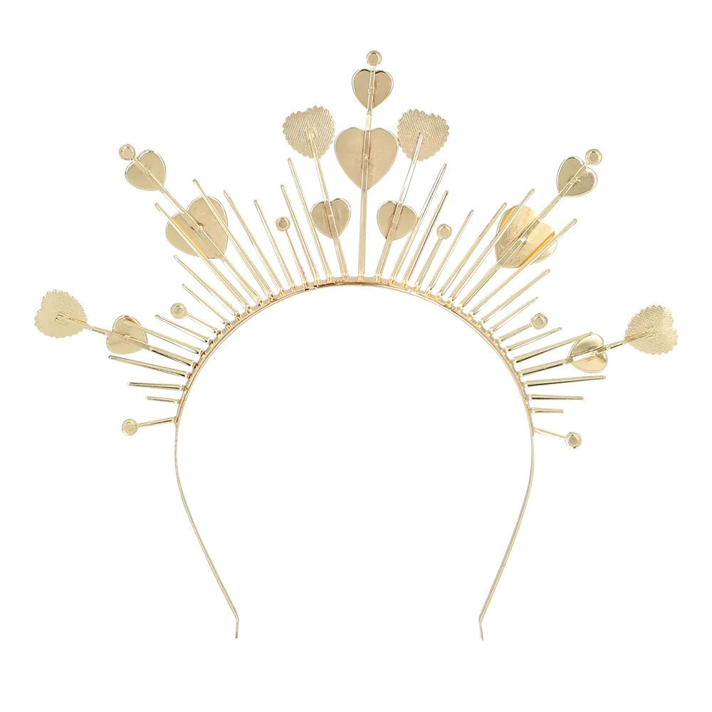Denne metalhalokrone er en unik tiara og er dekoreret med røde hjerter og tager et festival- eller bryllupsoutfit til det næste niveau. Derudover er dette smukke diadem med glorie også et unikt tilbehør til at fuldende et kostume som gudinde eller amor til karneval eller en cosplay-begivenhed.