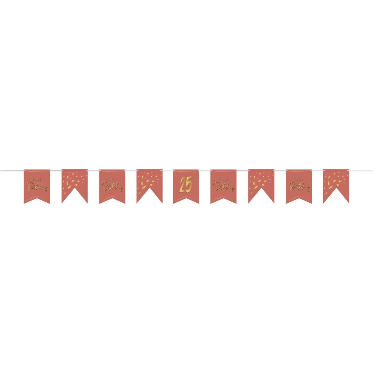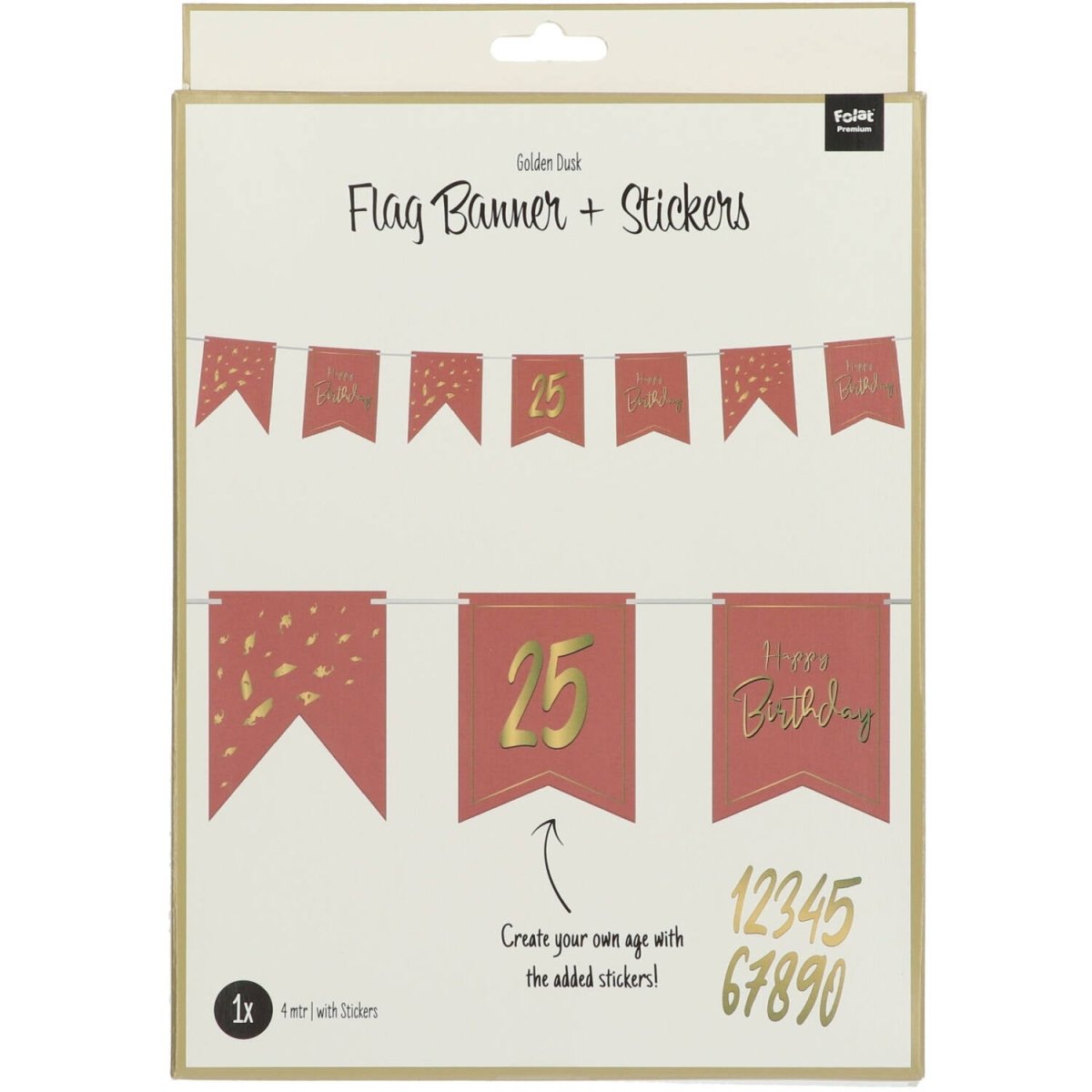 Gør en fødselsdagsfest ekstra personlig med denne DIY flagline i Golden Dusk. Flaglinen har en varm terrakottafarve og 10 flag trykt på begge sider. Takket være de medfølgende klistermærker kan du nemt tilføje fødselsdagsdrengens eller -pigens alder. Perfekt til fødselsdage og børnefødselsdage og nem at kombinere med andet festpynt.