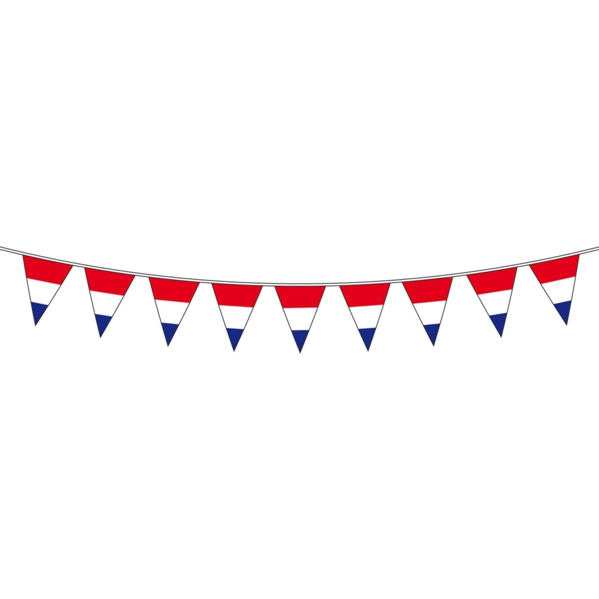 Flagline rød hvid blå 10 meter. Indhold: 1 flagline. Farve: Flerfarvet. Kan f.eks. bruges til følgende fester/anledninger: Fodbold, kongens dag. Denne guirlande er 10 meter lang. Varen er fremstillet af plast.