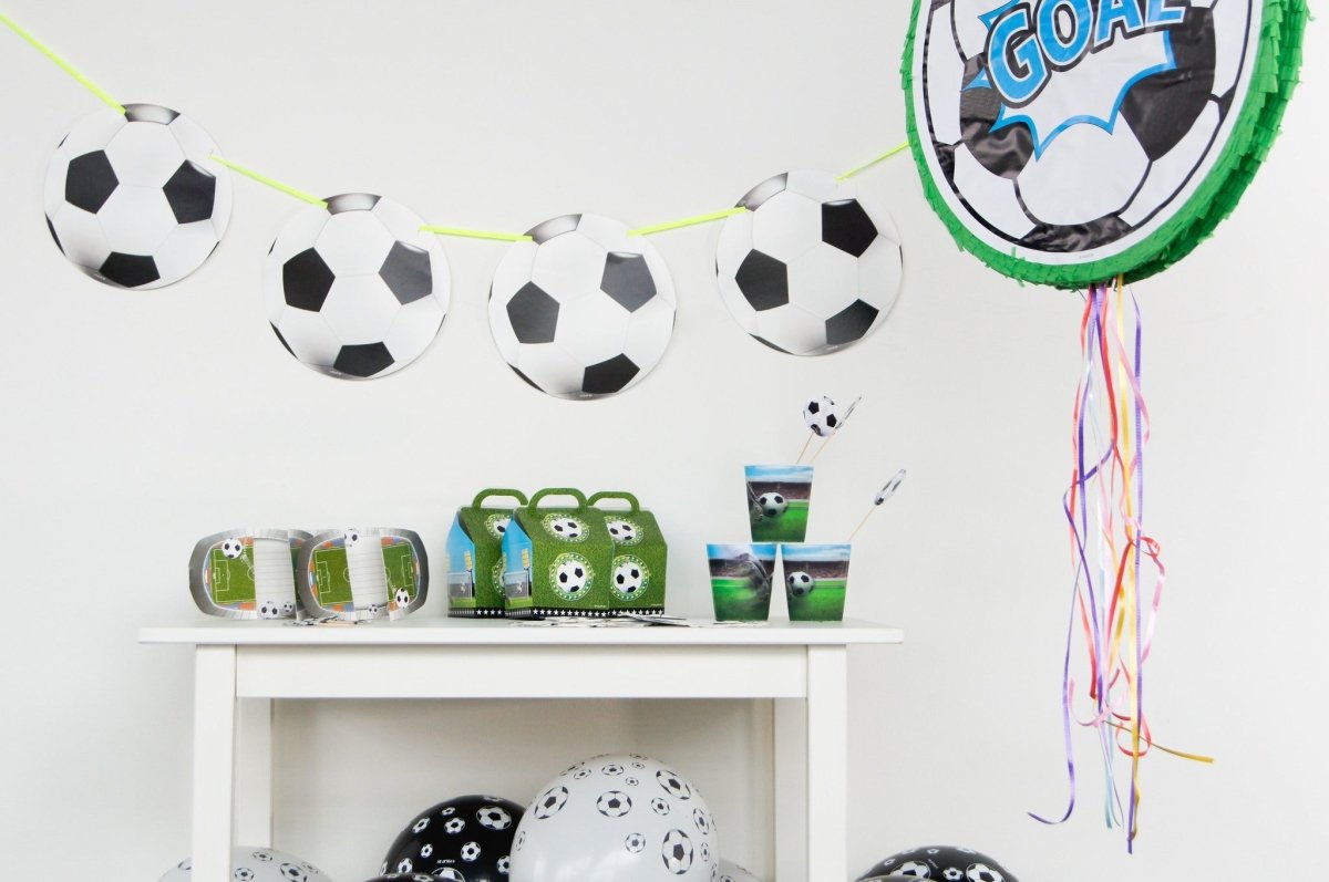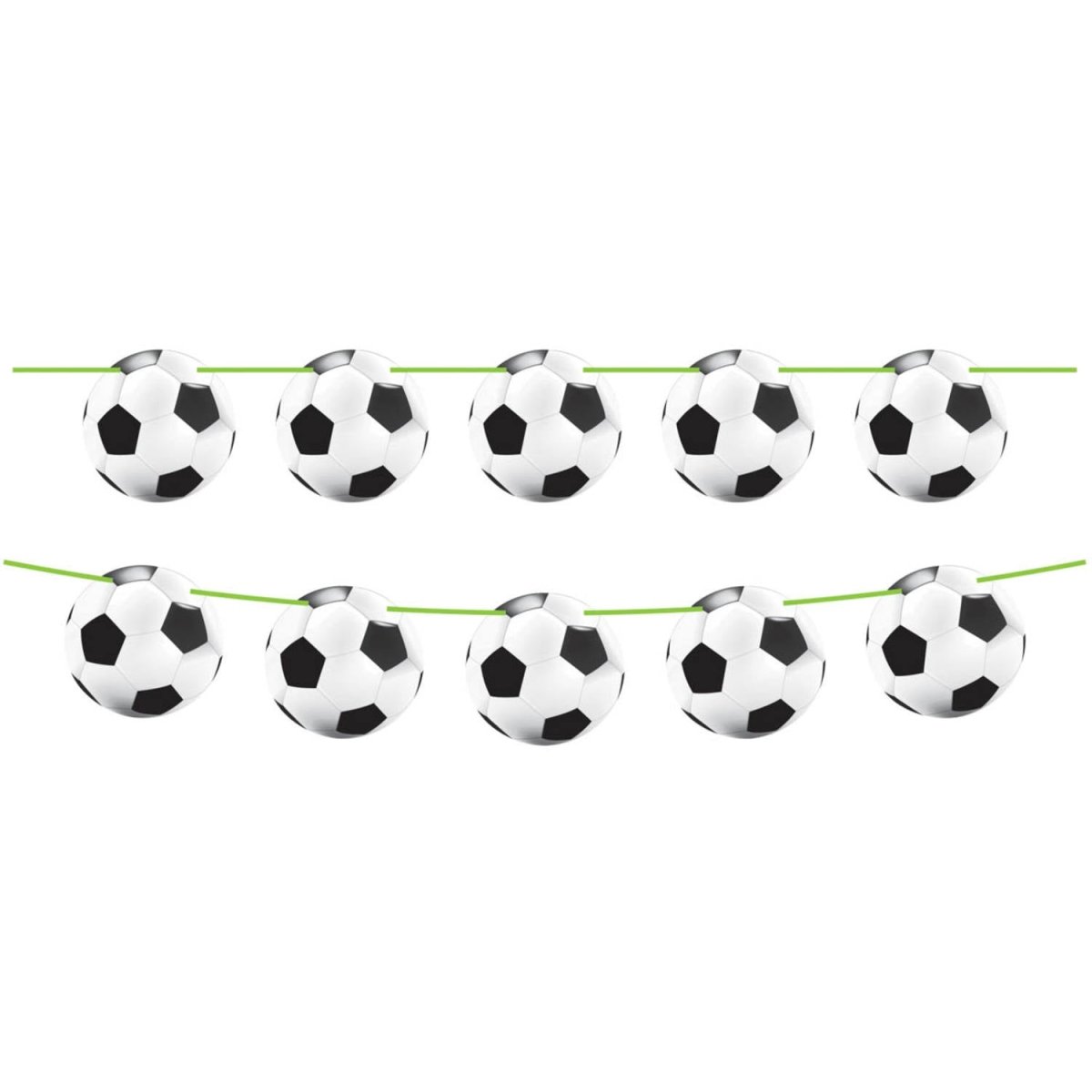 Fodboldflagline - 12 meter. Indhold: 1 flagline. Farve: Flerfarvet. Produkttema: Fodbold. Kan f.eks. bruges til følgende fester/anledninger: børnefødselsdag. Denne guirlande er 12 meter lang. Flaglinen er lavet af plast.