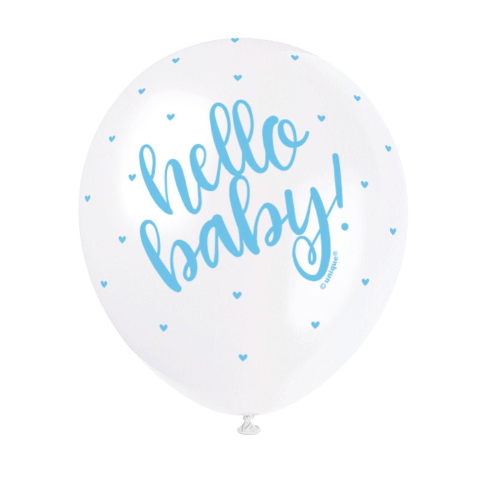 Fødselsballoner Hello Baby Blå 30cm 5stk