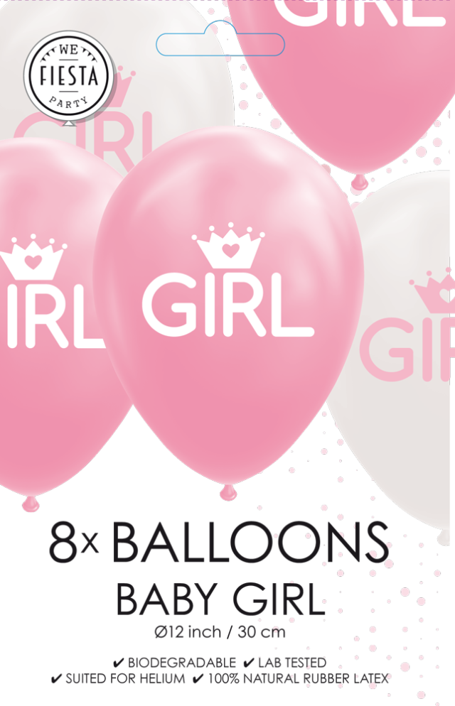 Fødselsballoner pige 30,5 cm 8 stk