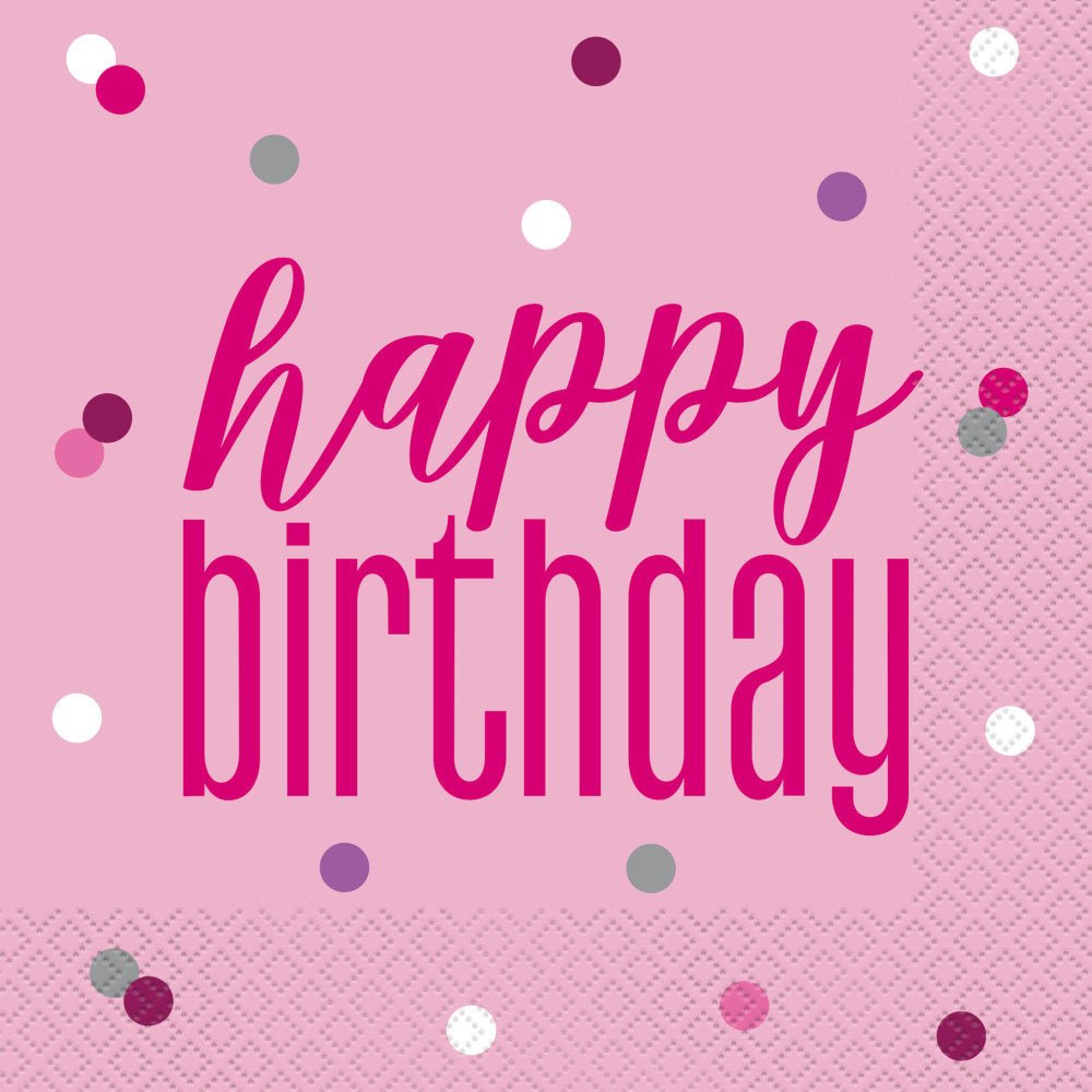 Fødselsdagsservietter Happy Birthday Pink 33cm 16stk