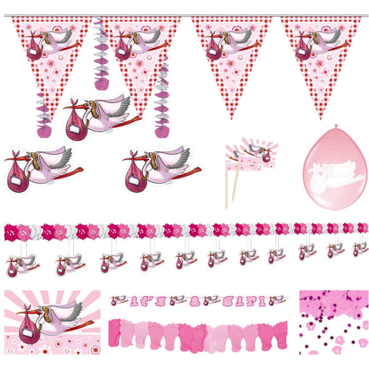 Festpakke Birth Girl. Indhold: 8 balloner, 1 flagline, 1 guirlande med underbøjler, 1 vinduesflag, 1 bogstavguirlande, bordkonfetti, 3x hængende dekorationer, 1 papirguirlande og 50 tandstikkere. Kan f.eks. bruges til følgende fester/anledninger: Fødselspige. Emballagen måler 35 x 26 x 10 cm. Varen er fremstillet af pap.