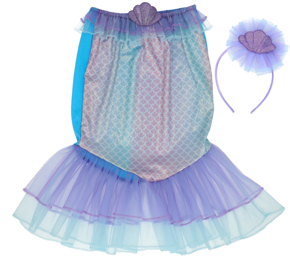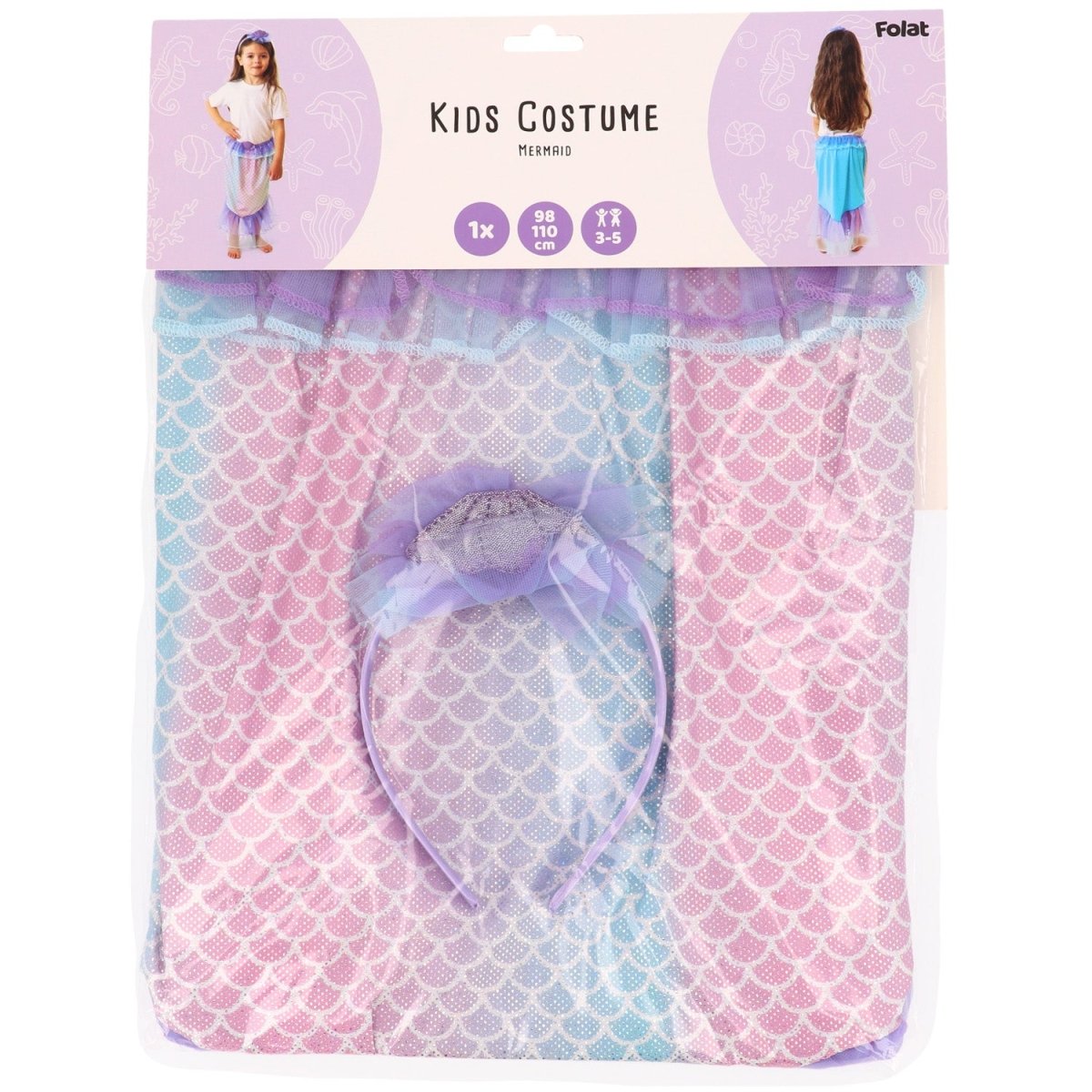 Se, en havfrue! Dette havfrue-kostumesæt forvandler ethvert barn til et fortryllende undervandsvæsen. Perfekt til børnefødselsdage, udklædningsfester og karneval. Sættet indeholder et fantastisk havfrueskørt og et matchende diadem, der er rigt på glans og farver.