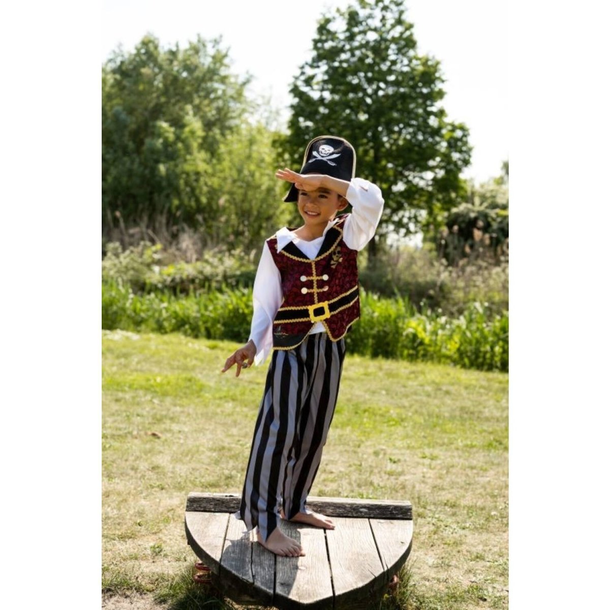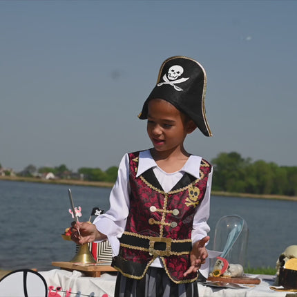 Med dette komplette piratkostume kan ethvert barn føle sig som en ægte eventyrer til søs, klar til at opdage skjulte skatte.