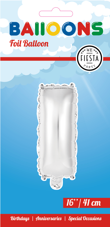 Folieballon Bogstav I Sølv 41 cm med sugerør