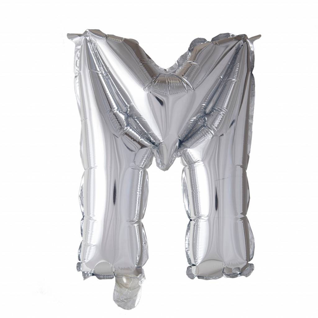 Folieballon Bogstav M Sølv 41 cm med sugerør