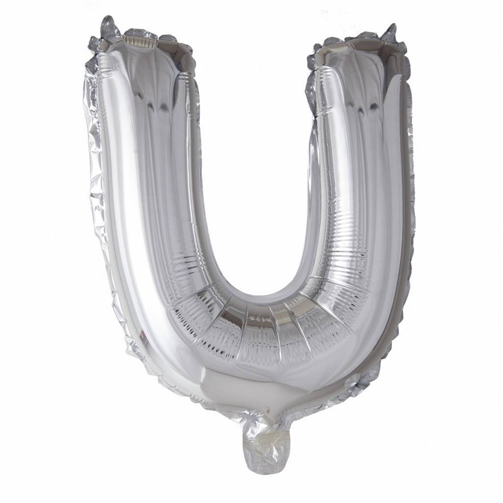Folieballon Bogstav U Sølv 41 cm med sugerør