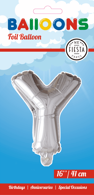 Folieballon Bogstav Y Sølv 41 cm med sugerør
