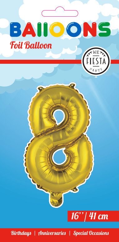 Folie Ballon Cijfer 8 Goud 41cm met Rietje