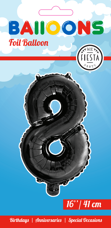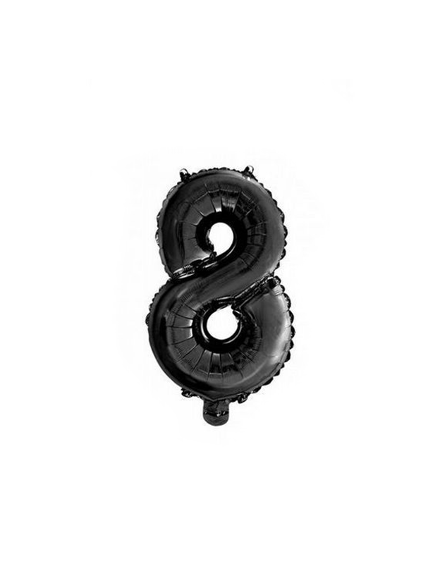 Folie Ballon Cijfer 8 Zwart 41cm met Rietje
