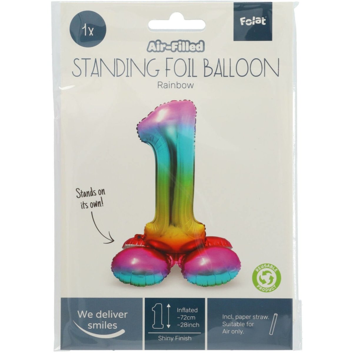 Folieballon Figur 1 Regnbue med stativ 72 cm