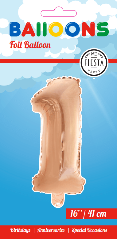 Folieballon Figur 1 Rose Gold 41 cm med sugerør