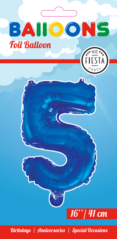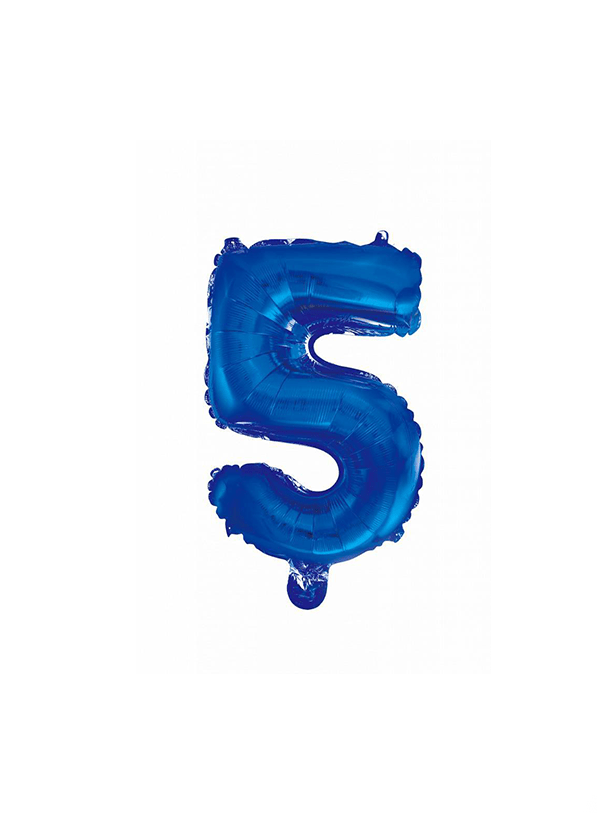 Folieballon Figur 5 Blå 41 cm med sugerør