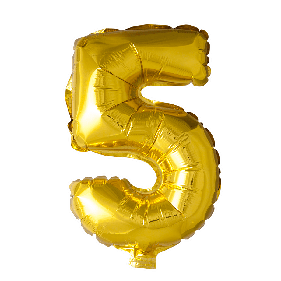Folieballon Figur 5 Guld 41 cm med sugerør