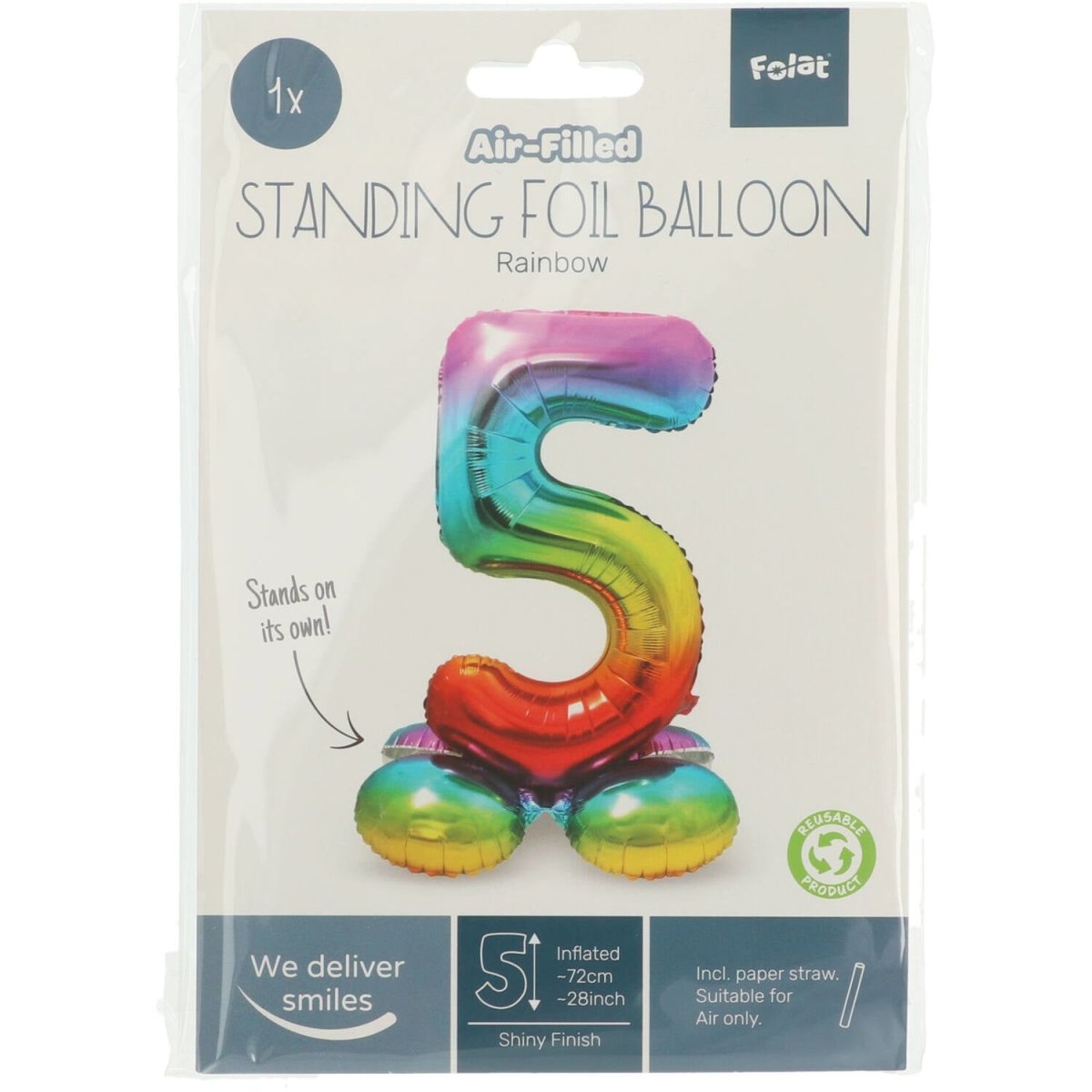 Folieballon Figur 5 Regnbue med stativ 72 cm