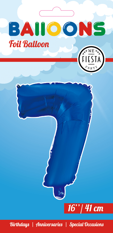 Folieballon Figur 7 Blå 41 cm med sugerør
