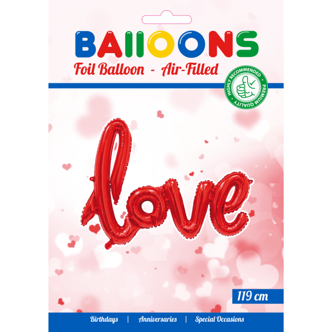 Emballageindhold: Folieballon Love Red 1.19m tom