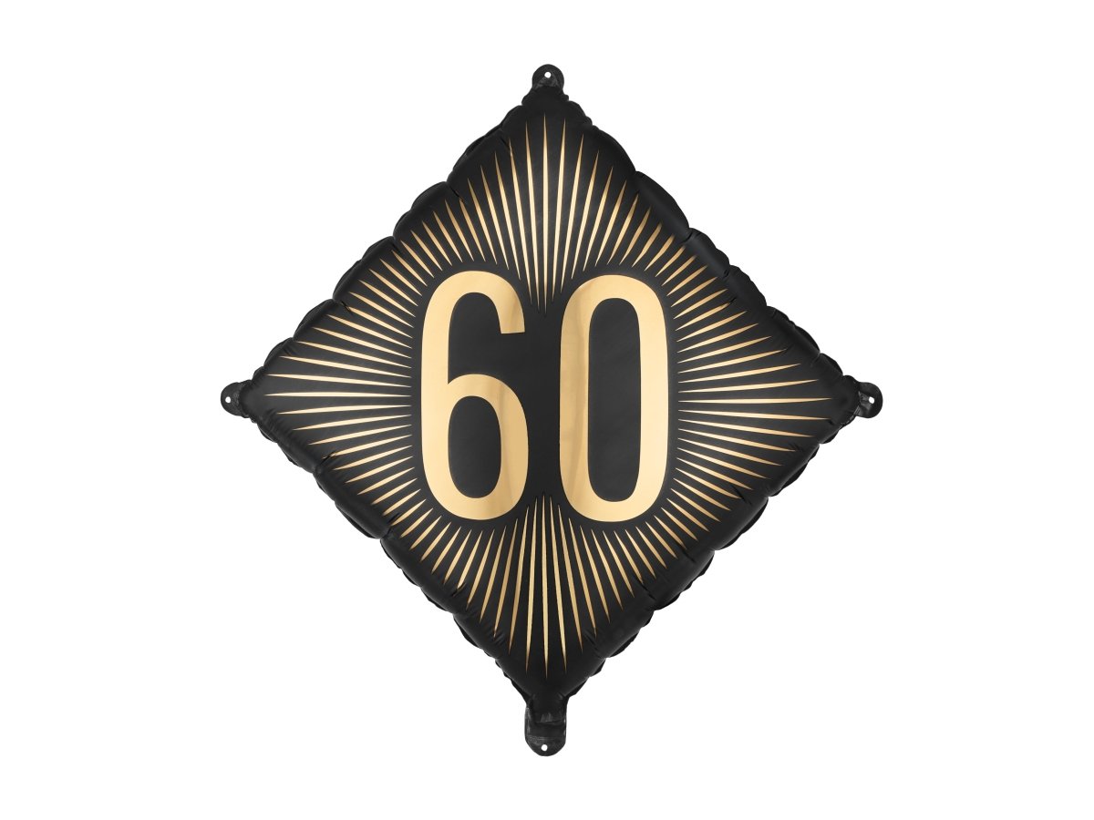 Vier een bijzondere 60e verjaardag of jubileum met deze stijlvolle zwarte folieballon met gouden “60” opdruk. Perfect voor een elegante en feestelijke decoratie.