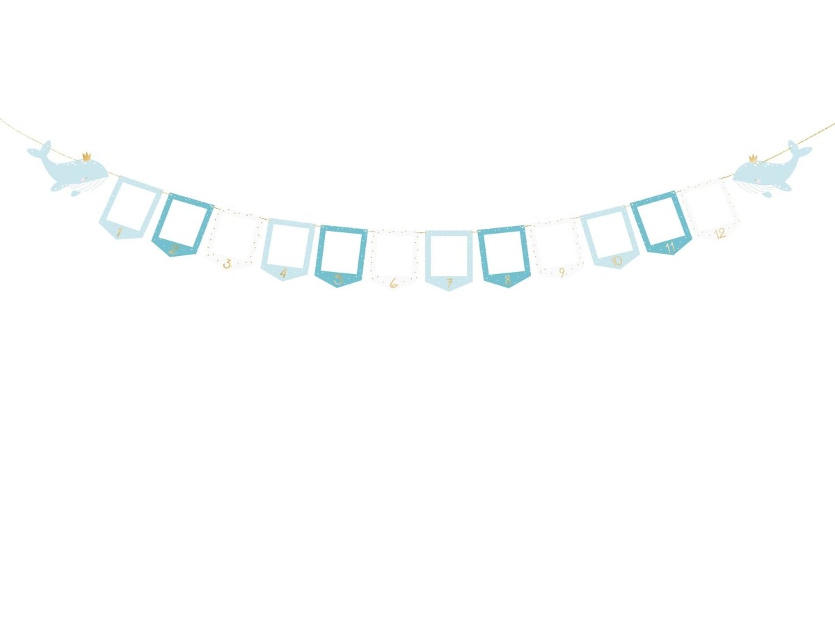 Fotokrans - Hval, farvemix, flagstørrelse ca. 10,5 x 15 cm. Længde på snor ca. 3 m.