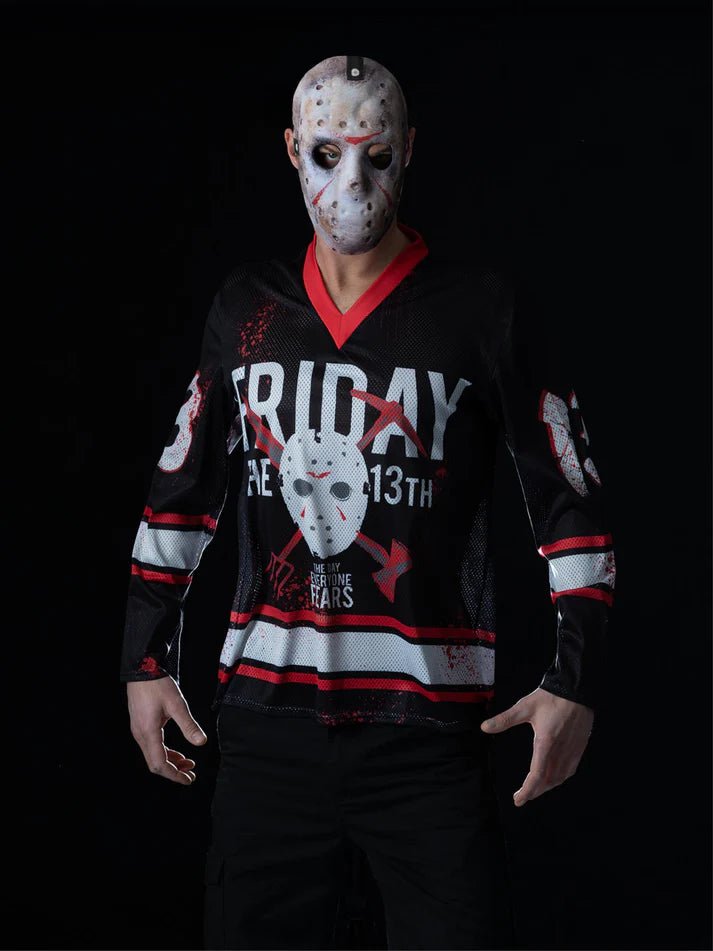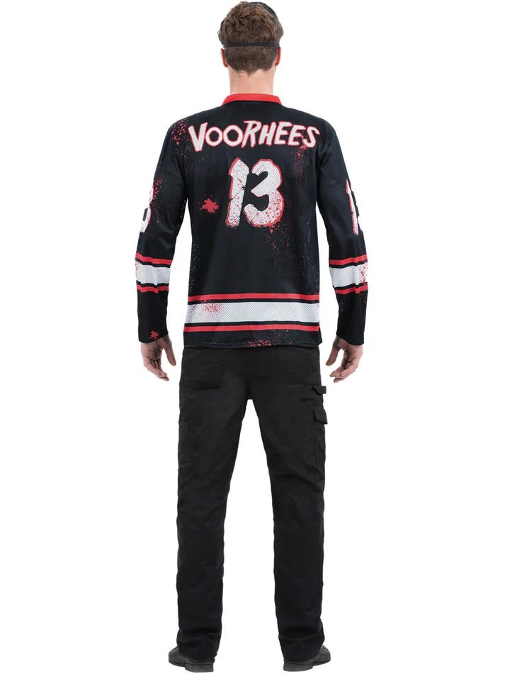 Bliv helt Jason Voorhees med dette kostume med hockeytop. Ideel til at kombinere med en matchende maske for et autentisk horror-look til halloween eller temafester.
