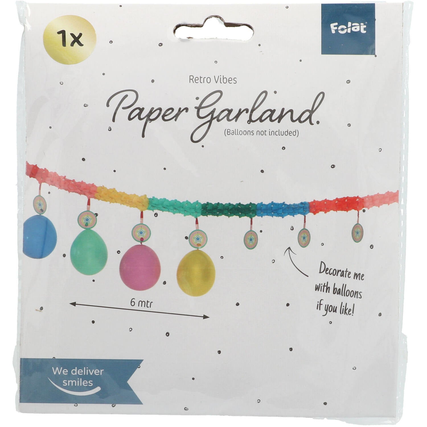 Slyng med vedhæng Retro - 6 meter. Indhold: 1 guirlande. Farve: Flerfarvet. Balloner er ikke inkluderet. Kan f.eks. bruges til følgende fester/anledninger: Fødselsdag, børnefødselsdag og jubilæum. Denne guirlande er 6 meter lang. Varen er lavet af papir.