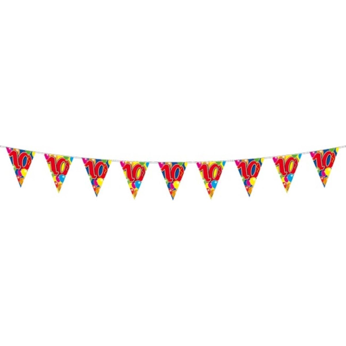10 års slyngeballoner - 10 meter. Indhold: 1 flagline. Farve: Flerfarvet. Produkttema: Balloner. Kan f.eks. bruges til følgende fester/anledninger: fødselsdag. Denne guirlande er 10 meter lang. Artiklen er fremstillet af plast.